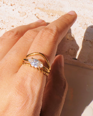Palmer (Bundle Set) Double Layer Twisted Hollow Curved Design Zircon Diamond Shaped Top Head Thin Ring Design Stackable Ring