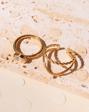 Our jewelry is crafted from high-quality stainless steel and features a gold PVD coating. This coating is 10x more durable than typical gold or silver plating, making our pieces waterproof.