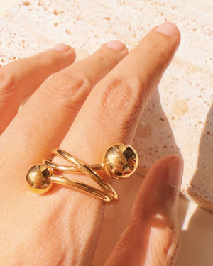 Paulette Dual Top Head Round Ball Tip Coiled Triple Layer Look Design Gold Open Ring