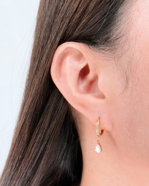 Loretta Zircon Paved Rounded Huggies Teardrop Waterdrop Shaped Zircon Crowned Set Gold Drop Earrings