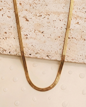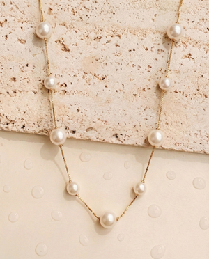 Arlen (Bundle Set) 2 Necklaces Double Layer Pearl Beaded Thin Anchor Chain Wide Flat Snake Chain Gold Necklace