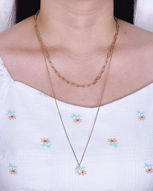 Camden Double Layer Choker Paperclip Chain Long Thin Curb Chain Pearl Pendant Gold Necklace