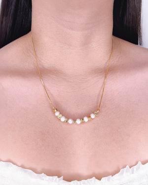 Clementine Center Pearl and Geometric Beaded Pendant Thin Snake Chain Gold Necklace