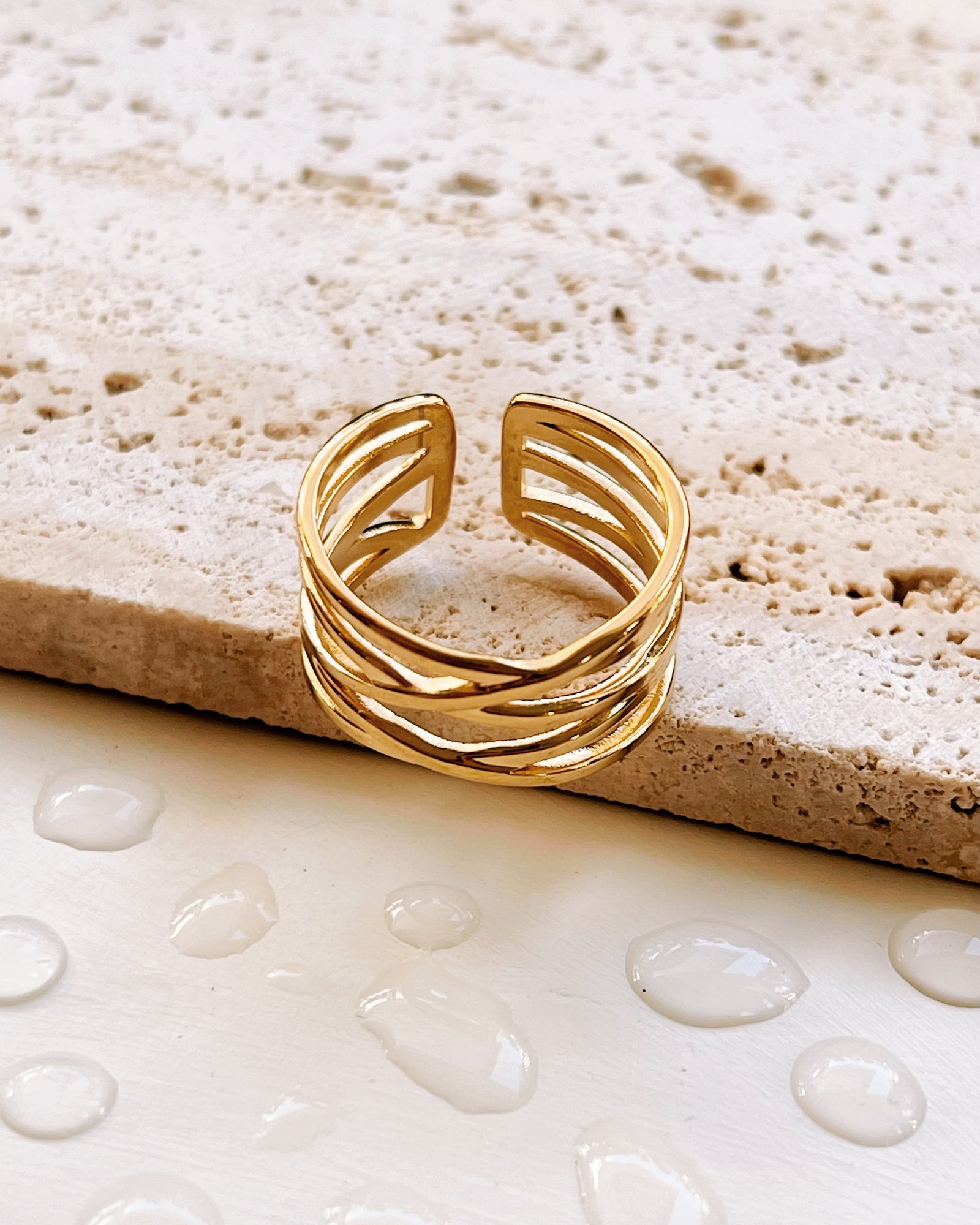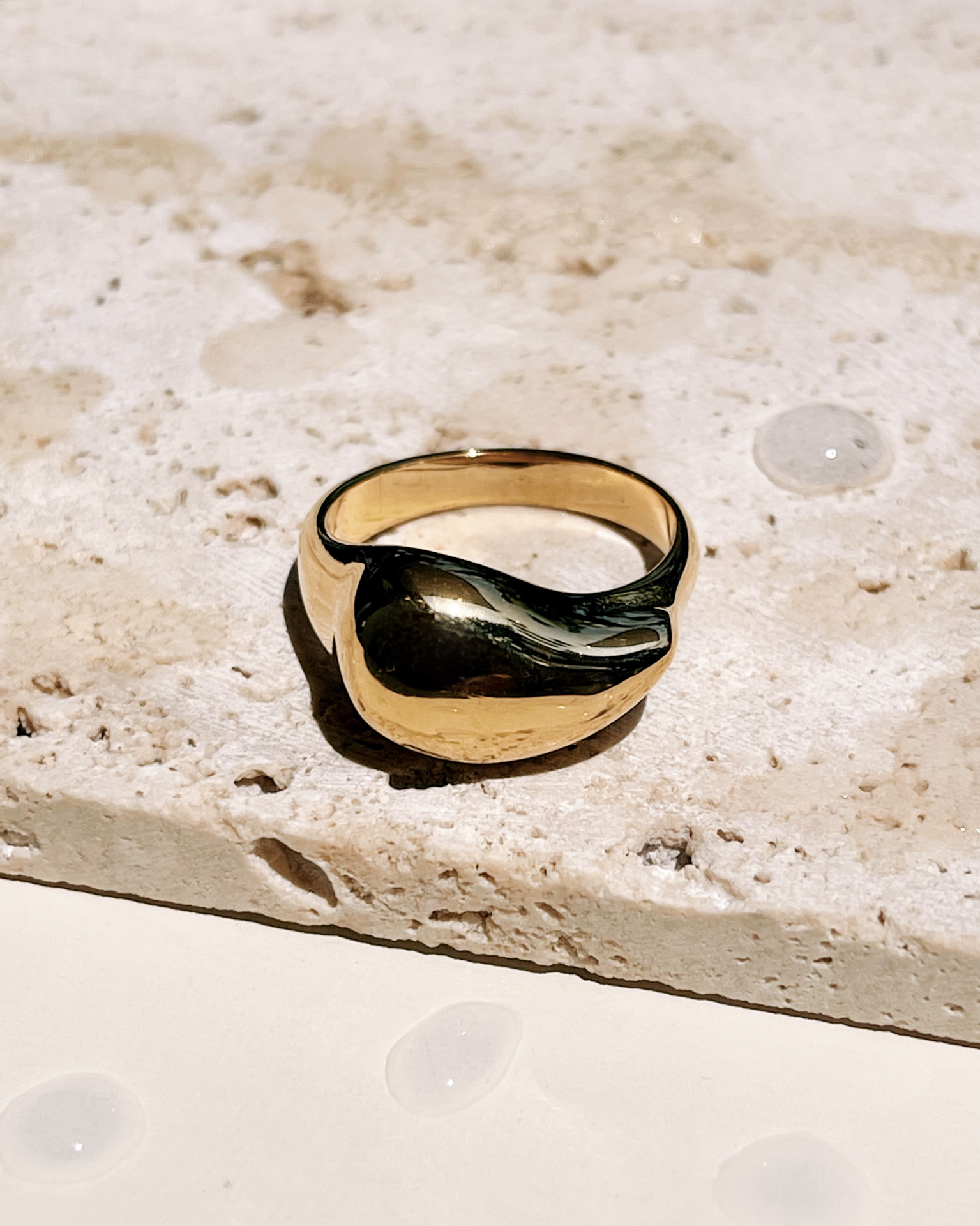 Daphne Waterdrop Shaped Top Smooth Chunky Gold Ring