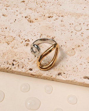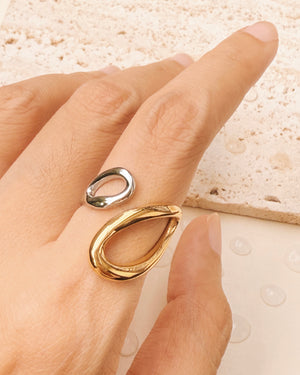 Kenya Two Tone Dual Top Head Silver Gold Hollow Round Irregular Shaped Tip Open Ring