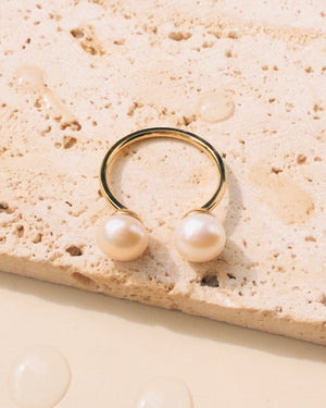 Liv Dual Pearl Top Head Thin Bar Design Open Ring