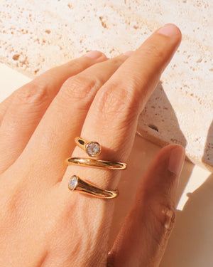 Penny Dual Top Head Zircon Inlaid Tip Coiled Layered Look Design Gold Open Ring