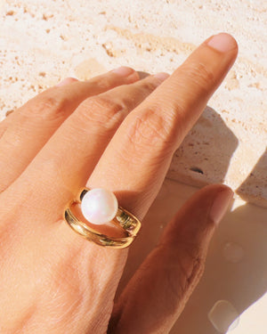 Quest Double Layer Split Hollow Pearl Top Head Design Gold Ring