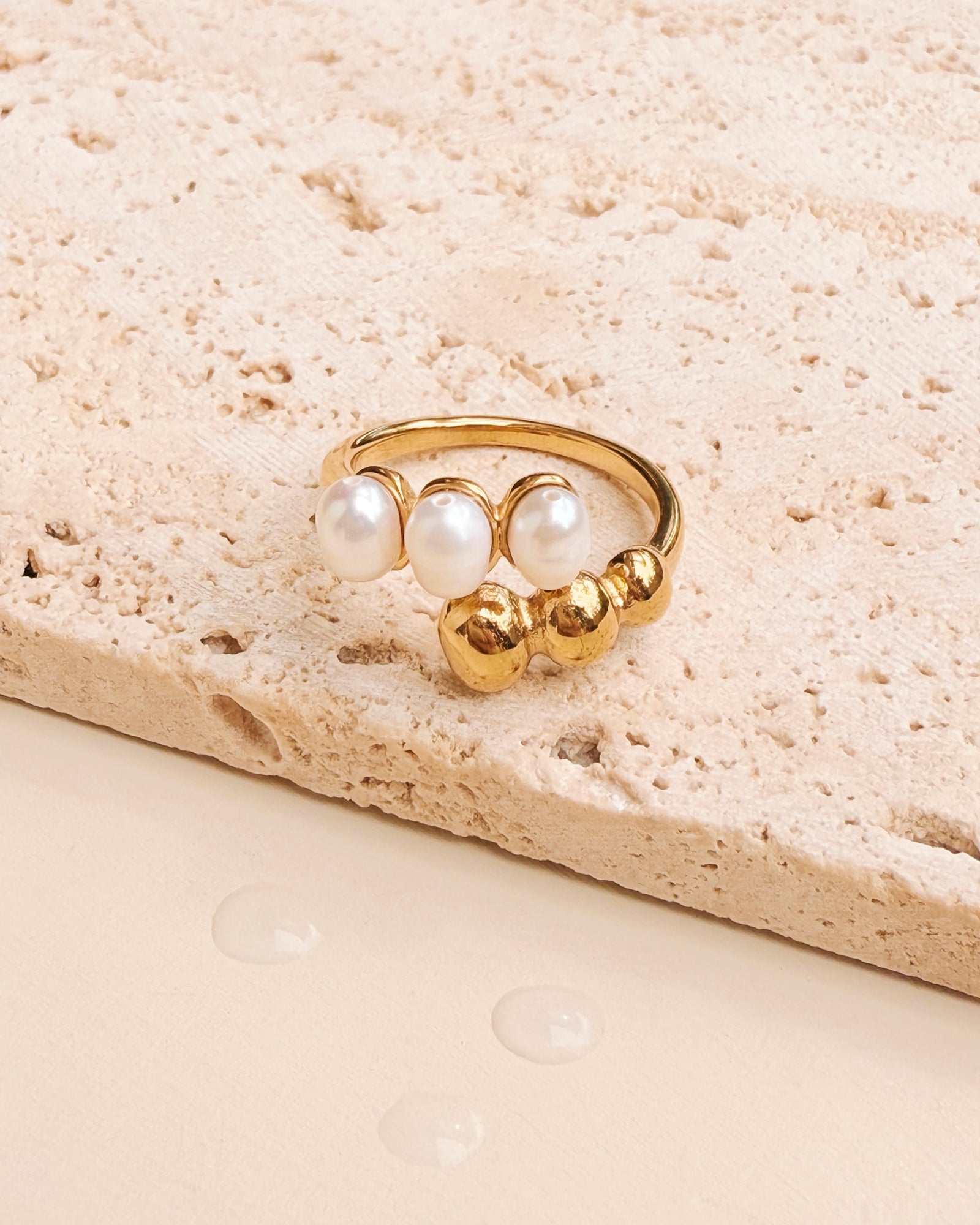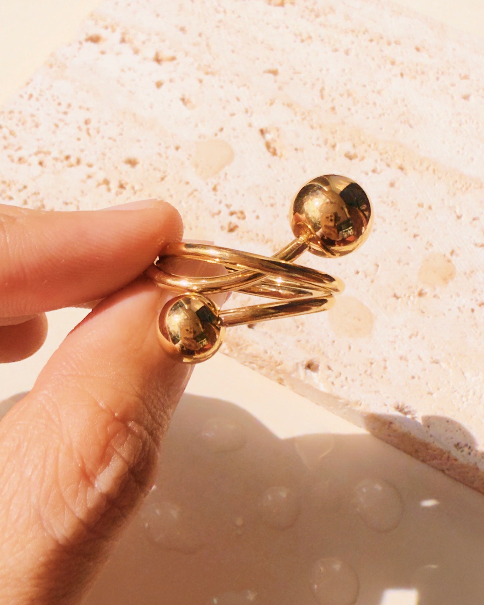 Liv Dual Pearl Top Head Thin Bar Design Open Ring