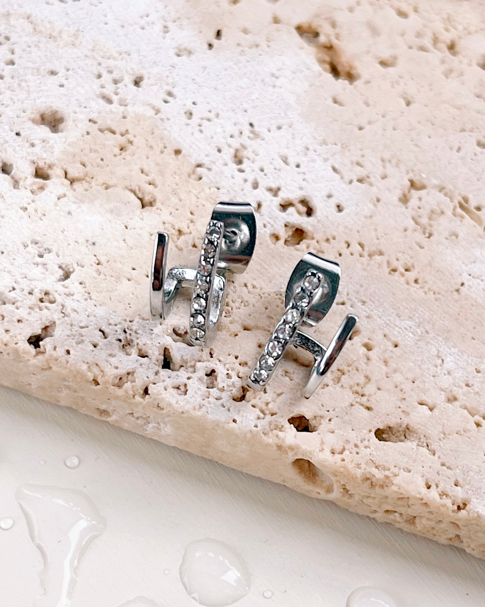 Misha (Silver) Dainty Square Bar Flat Back Stud Earrings