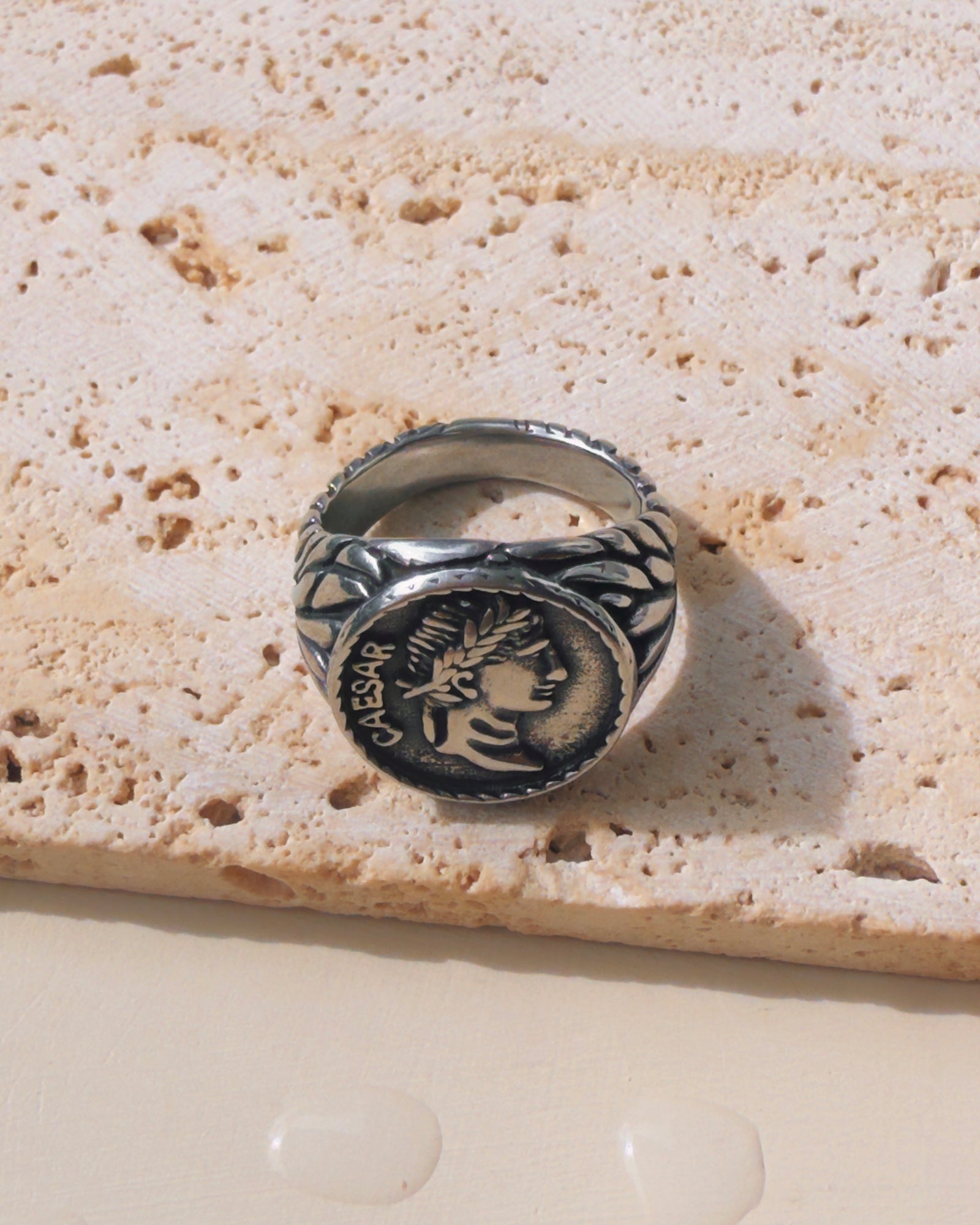 Caesar (Silver) Face Engraved Top Head Design Ring