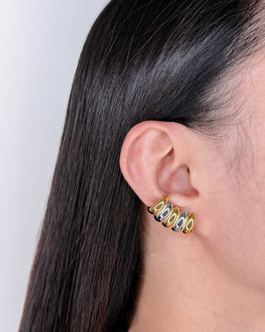 Aniyah (Two Tone) Stacked Silver Gold Chunky Caterpillar Shaped Stud Earrings