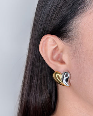 Azalea (Two Tone) Half Silver Half Gold Chunky Heart Shaped Stud Earrings