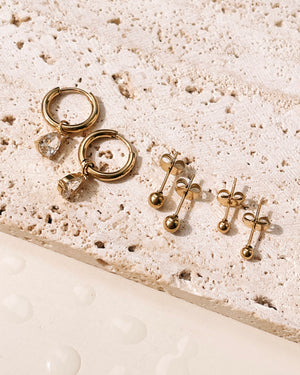 Beth (Bundle Set) 3 Pairs Waterdrop Zircon Huggies Small and Big Round Ball Gold Studs