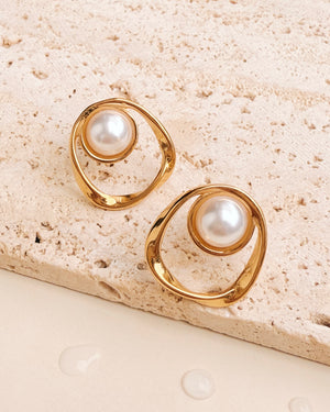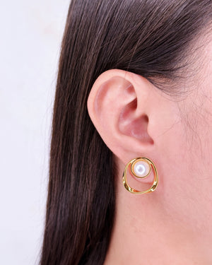 Debbie Halo Design Pearl Inlaid Set Centerpiece Gold Stud Earrings