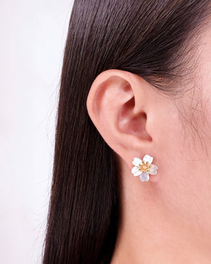 Dolly Shell Stone Flower Shaped Crown Petal Center Design Gold Stud Earrings