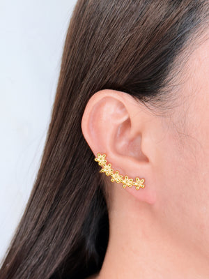Martina Vertical Stacked Carved Flowers Design Gold Stud Earrings
