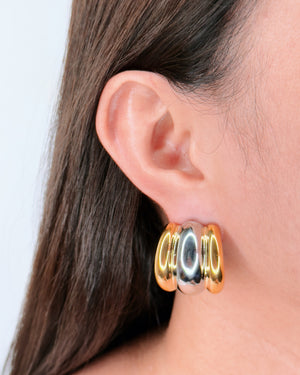 Matilda (Two Tone) Chunky Stacked Triple Layer Gold Center Silver C-Shaped Stud Earrings