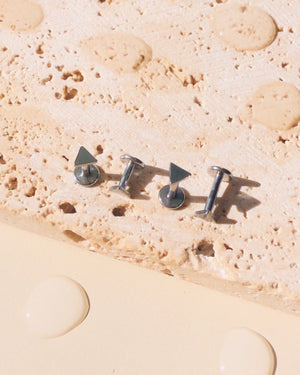 Minerva (Silver) Dainty Triangle Bar Flat Back Stud Earrings