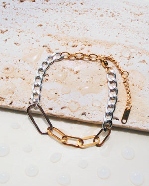 Fiorella Two Tone Silver Gold Multi Design Thick Cuban Chain Small Big Paperclip Chain Link Chain Bracelet