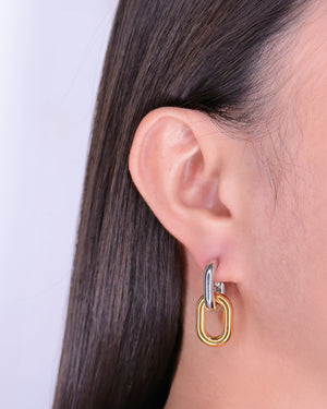 Jodilynn Two Tone Silver Gold Two Chunky Hoop Chain Design Drop Earrings