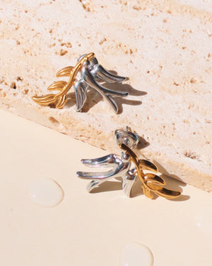 Priyanka Two Tone Silver Dove Gold Leaf Design Studs