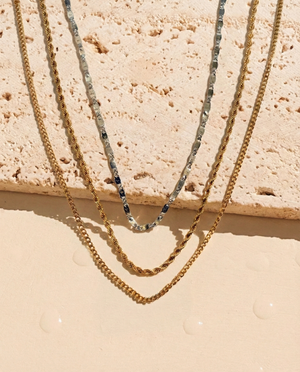 Our jewelry is crafted from high-quality stainless steel and features a gold PVD coating. This coating is 10x more durable than typical gold or silver plating, making our pieces waterproof.