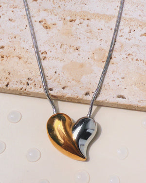 Murphy (Two Tone) Half Silver Half Gold Chunky Solid Shaped Pendant Thin Round Snake Silver Chain Design Necklace