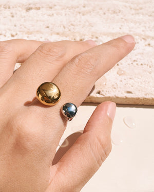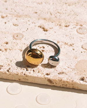 Ariel (Two Tone) Big Small Silver Gold Mushroom Head Top Design Open Ring