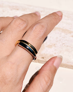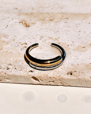 Kehlani (Two Tone) Half Silver Half Gold Attached Layered Look Design Open Ring