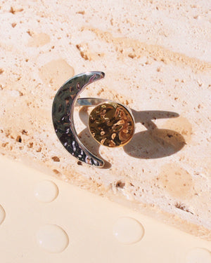 Portia Two Tone Dual Top Head Hammered Design Silver Moon Gold Star Open Ring