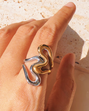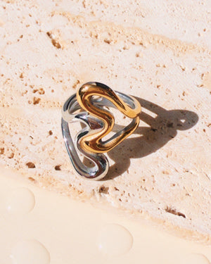 Reese Two Tone Dual Melted Sliver Gold Heart Shaped Design Ring
