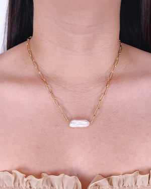 Belle Baroque Freshwater Pearl Pendant Paperclip Chain Gold Necklace