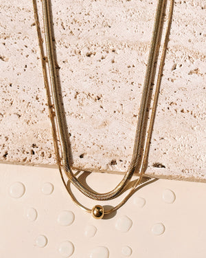 Carly Double Layer Intertwined Flat Wide and Thin Snake Chain Ball Pendant Gold Necklace