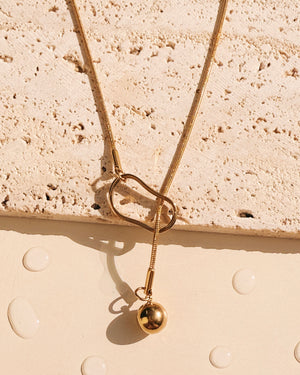 Ezlyn Ball Drop Pendant Thin Snake Chain Pull String Lock Design Gold Necklace