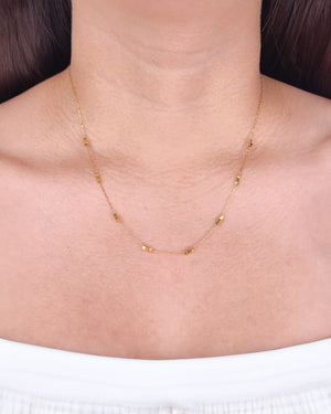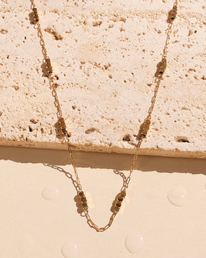 Ferna Faceted Box Beaded Chain Classic Rounded Link Chain Gold Necklace