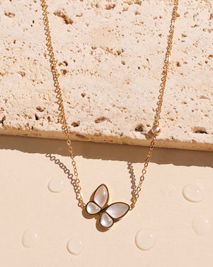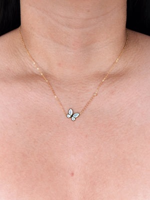 Hela Butterfly Shell Stone Inlaid Set Pendant Rounded Zircon Bezel Set Side Pendant Classic Link Chain Gold Necklace