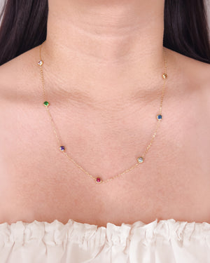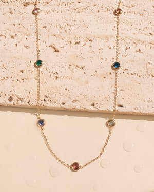 Jennifer Multi Color Round Zircon Inlaid Bezel Set Beaded Design Pendant Classic Link Chain Gold Necklace