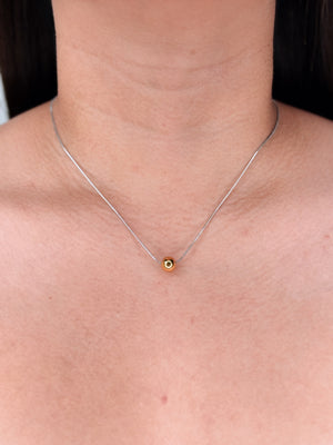 Kendall (Bundle Set) 2 Necklaces Double Layer Two Tone Short Thin Silver Snake Chain Small Gold Pendant Long Thin Silver Snake Chain Big Gold Pendant Silver Necklace