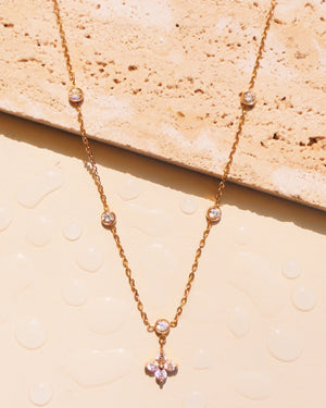 Marcelita Round Zircon Bezel Set Beads Zircon Clover Shaped Pendant Classic Link Chain Gold Necklace
