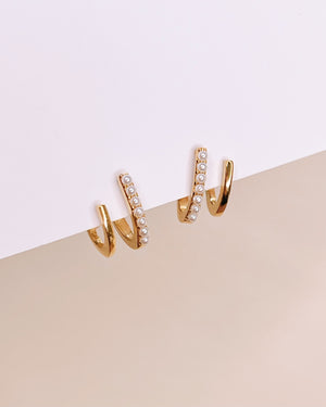 Audrey (Gold) Double Layer Imitation Pearl Paved Layered Look Huggies