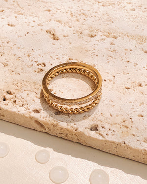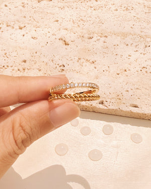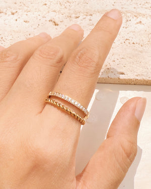 Greta Double Layer Zircon Paved Thin Twisted Design Layered Look Gold Ring