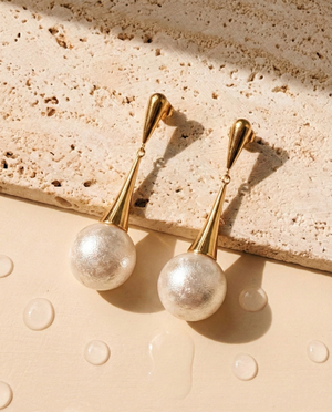 Irynelle Cone Dangling Round Shell Stone Pearl Like Design Gold Drop Earrings