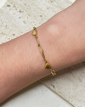 Jeralyn Heart Shaped Charm Pendants Small Paperclip Chain Gold Bracelet