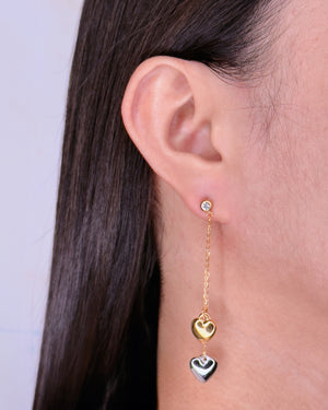 Kathleen Round Zircon Bezel Set Two Tone Silver Gold Hearts Pendants Link Chain Tassel Design Gold Drop Earrings